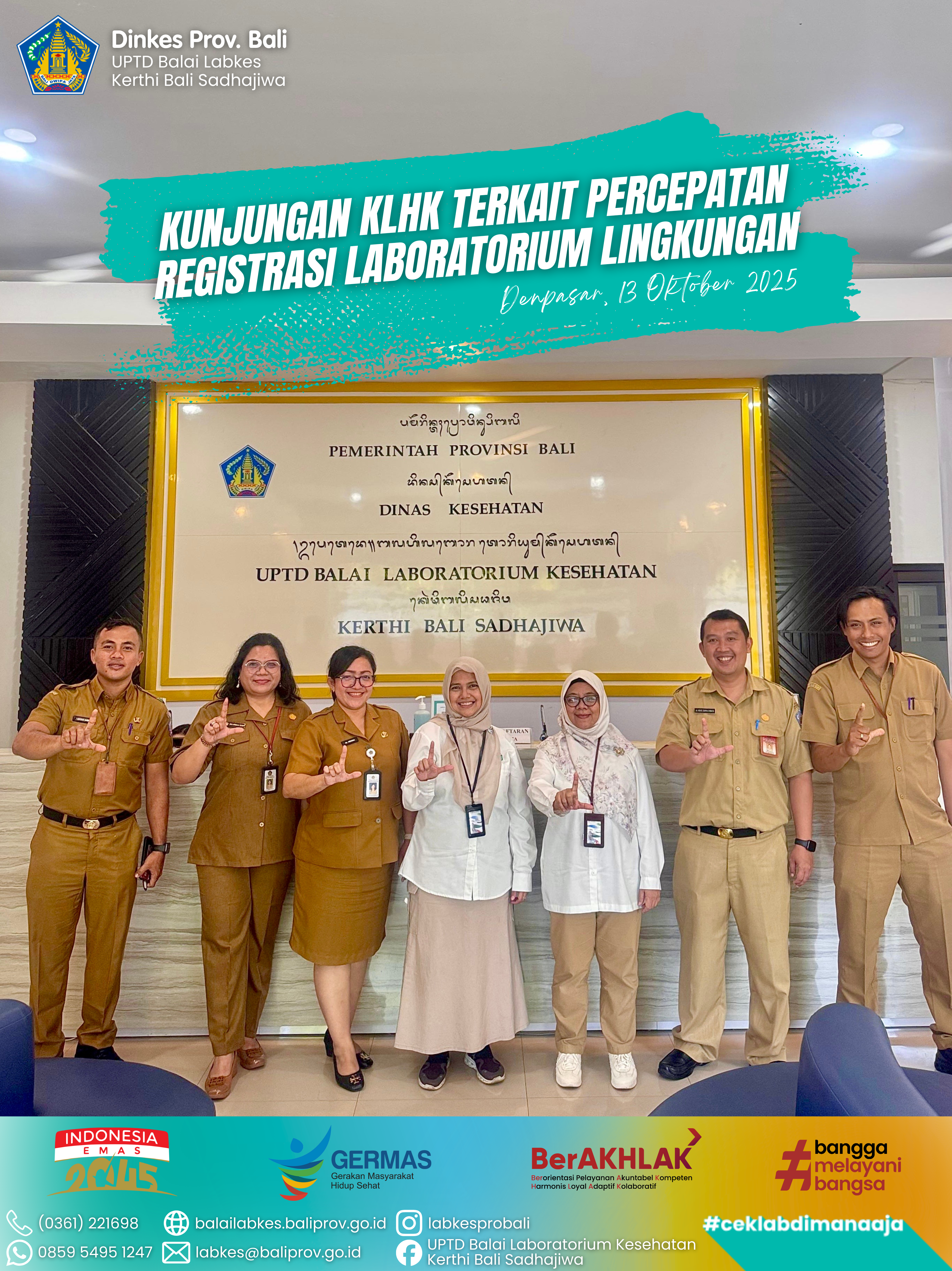 Kunjungan oleh Kementrian Lingkungan Hidup/Badan Pengendalian Lingkungan Hidup terkait Percepatan Registrasi Laboratorium Lingkungan di UPTD Balai Laboratorium Kesehatan Kerthi Bali Sadhajiwa Provinsi Bali pada 13 Oktober 2025.