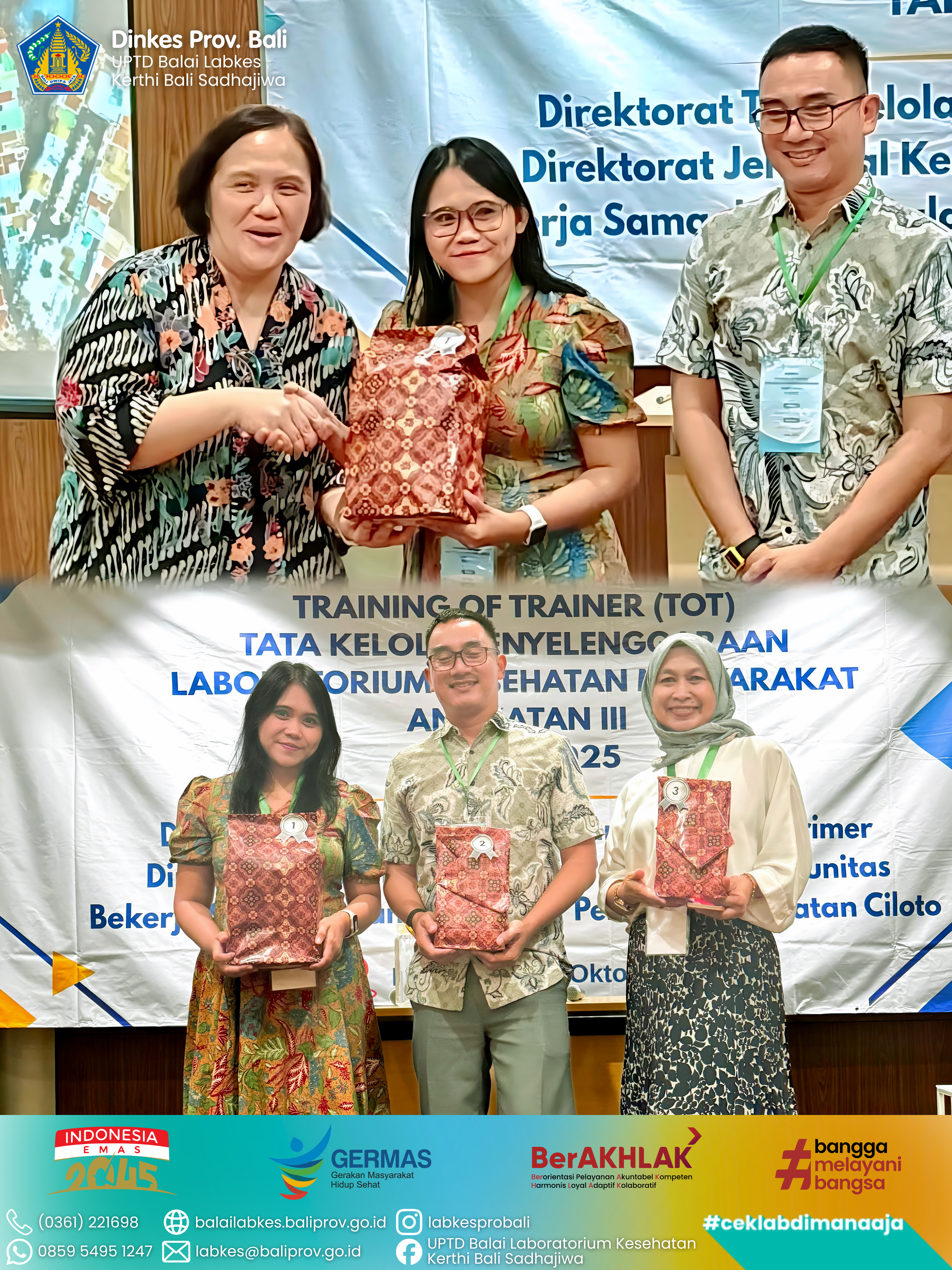 Dokter Ahli Pertama, ๐ฑ๐ฟ. ๐๐๐ต ๐๐๐ ๐๐ฎ๐ป๐ด๐ธ๐ถ๐๐ฎ๐ฟ๐๐ฎ๐ป๐ถ, meraih ๐ฃ๐ฒ๐๐ฒ๐ฟ๐๐ฎ ๐ง๐ฒ๐ฟ๐ฏ๐ฎ๐ถ๐ธ ๐ dalam Pelatihan ๐ง๐ฟ๐ฎ๐ถ๐ป๐ถ๐ป๐ด ๐ผ๐ณ ๐ง๐ฟ๐ฎ๐ถ๐ป๐ฒ๐ฟ (๐ง๐ผ๐ง) ๐ง๐ฎ๐๐ฎ ๐๐ฒ๐น๐ผ๐น๐ฎ ๐ฃ๐ฒ๐ป๐๐ฒ๐น๐ฒ๐ป๐ด๐ด๐ฎ๐ฟ๐ฎ๐ฎ๐ป ๐๐ฎ๐ฏ๐ผ๐ฟ๐ฎ๐๐ผ๐ฟ๐ถ๐๐บ ๐๐ฒ๐๐ฒ๐ต๐ฎ๐๐ฎ๐ป ๐ ๐ฎ๐๐๐ฎ๐ฟ๐ฎ๐ธ๐ฎ๐ ๐๐ป๐ด๐ธ๐ฎ๐๐ฎ๐ป ๐๐๐ ๐ง๐ฎ๐ต๐๐ป ๐ฎ๐ฌ๐ฎ๐ฑ, yang diselenggarakan oleh ๐๐ถ๐ฟ๐ฒ๐ธ๐๐ผ๐ฟ๐ฎ๐ ๐ง๐ฎ๐๐ฎ ๐๐ฒ๐น๐ผ๐น๐ฎ ๐ฃ๐ฒ๐น๐ฎ๐๐ฎ๐ป๐ฎ๐ป ๐๐ฒ๐๐ฒ๐ต๐ฎ๐๐ฎ๐ป ๐ฃ๐ฟ๐ถ๐บ๐ฒ๐ฟย @kemenkes_riย bekerja sama denganย @bbpkcilotokemenkesย , pada 12โ19 Oktober 2025 di Hotel Swis-Bel, Bogor.
